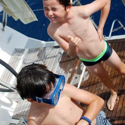 Nicolas, Emmanuelle, Félix,Oscar, Martin, Basile ; a great cruising team, ready to go!